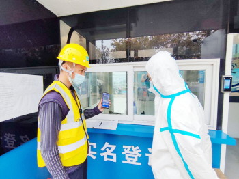 “在每个门岗,我们都设立了专门的体温监测点,对所有进入施工现场人员进行体温检测和健康码查验,核对人员身份和健康状况。”中建八局四公司青岛虚拟现实产业园项目生产经理吕说:“工作之余,项目部为工友准备了充足的防疫物资、生活物资,实行奖励制度,让生产一线的员工在紧张的施工进程中感到疫情防控既有力度、更有温度,进一步激发他们的工作干劲。”
