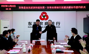 为进一步深化政银合作,提升普惠金融服务水平,11月22日,东明农商银行与东明县自然资源和规划局举行党建共建和网上业务联办合作签约仪式。东明县自然资源和规划局党组书记、局长闫晓阳,不动产登记中心主任陈俊杰,东明农商银行党委书记、董事长翟忠庆,党委副书记、行长闫峰,党委副书记、监事长崔化敏及双方相关部室负责人出席活动。