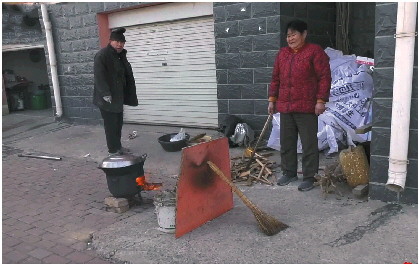 燃气断供,德州武城县一小区居民无奈在楼下烧柴做饭。