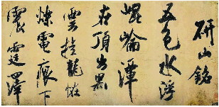 米芾与苏轼、黄庭坚、蔡襄被称为“宋四家”。其书法自由放达,行笔沉着飞动,用笔八面出锋,笔势信马由缰,结体欹侧恣肆,变化无穷。《研山铭》为米芾晚年少见的大字行书,和其早年的书法相比稍有变化,但仍不改其精神气质。