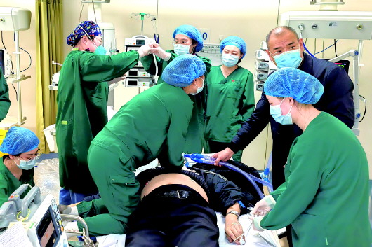 近日,在烟台市奇山医院门诊大厅,一位老人突然倒地,呼吸心跳骤停、全身抽搐。生死攸关时刻,医护人员迅速反应,各部门紧密配合,经过不间断胸外按压和7次电除颤等紧急抢救措施,30分钟后老人呼吸心跳得以恢复。