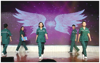 风采展示大赛在“盛世花开”的载歌载舞中拉开帷幕。夏花绚烂,吾心赤诚。吾辈与新时代同向同行、共同前进,生逢盛世,当不负盛世;勇立潮头、当勇挑重任。护理工作的平凡,并没有泯灭天使的火热之心,一首声情并茂、真挚动人的诗朗诵;一支热情洋溢、激情四射的舞蹈;一曲荡气回肠、直击心灵的歌曲;一个感人至深、泪洒现场的小品;一场端庄大气、飒爽英姿的走秀……舞台上一个个动人的瞬间,一袭袭飘然的白衣,诠释了护士的职业价值,展示了护士的日常工作,更展现了新时代护理工作者提士气、鼓干劲、创佳绩,用心用情做好新时代卫生健康事业的风采,鼓舞了人心,振奋了士气。大赛现场气氛热烈,热情高涨,不时爆发出一阵阵如雷的掌声。