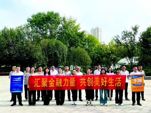 大家穿着统一的阳光logo衫,齐聚赵王河畔,迎着微风,呼吸着清新的空气,欣赏着河畔美景的同时,步伐矫健、热情高涨,用脚步展示金融消费者权益保护新活力,用汗水诠释共创美好新生活。