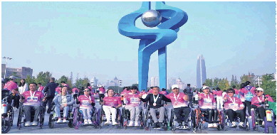 ◤10月29日,参加完2023济南(泉城)马拉松迷你跑之后,李伟(右四)和朋友们留下欢乐的大合影。