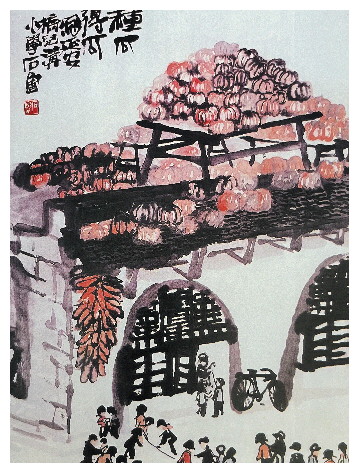 1949年之后,石鲁画作转入革命、历史与现实相结合的创作风格,对黄土高原、黄河两岸风土民情关注颇多,精品佳作频现。其中的《黄河两岸度春秋》(系列)立意黄河之水天上来,纯以水墨绘出崖壁横斜之势,孤舟逆水而上,与崖壁形成团块及点线的呼应,将变幻莫测、水急浪涌的黄河,以写实的手法表现出来,大气磅礴,动人心魄,呈现出黄河两岸苍凉与荒寒之态,刻画出孤帆远影碧空尽、天际中一队纤夫奋力前行的英勇形象。《东方欲晓》别出心裁,运用比、兴手法,通过描绘窑洞前银钩铁画般的枝干和窑洞顶部如荆棘一样的枯枝,以及黑白对比下透着灯光的窑洞窗户棂子,暗示长夜将过,黎明在即。《种瓜得瓜》成画于1962年,以一个窑洞院落为背景,一群孩子在跳绳嬉戏,窑洞顶堆满了成熟的大南瓜,以瓜喻人,寓意孩子们茁壮成长,充分表现了画家心中有民情,笔下力透纸背的厚意所在。这是石鲁那个时代艺术家能够领悟,并运用到实践中的创作手法。《高山仰止》取材于黄土高原上农民耕地劳作的场景,以传统山水画高远式的特写构图表现了高原凸岭的丘壑纵横、壁立千仞之姿,歌颂了黄土高原上的劳动人民黄天厚土的拓荒精神。