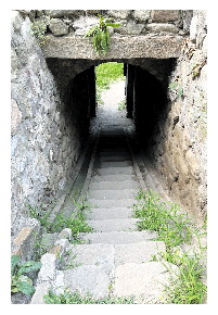 虽然店头古堡的军事作用日渐衰退,但店头村的石窑建筑与风格一直得以保留,至今并无大的改变。尤其是石窑洞的张扬个性、构造物件的艺术性、观赏性,风韵、底气犹存,栩栩如生、惟妙惟肖。先从几个小件的构制说起,店头古堡有一处叫做紫竹林寺的庙宇,当地人称袖珍紫竹林。别看其小,却是暗藏玄机,艺术性与技术性结合得最好。在供奉地藏菩萨的北偏殿屋檐上,有一个用当地砂石刻制的石寿桃,寥寥几笔,曲线切割,实现最佳视角,活灵活现,要不是材质色泽之差,没有人能认出这是一只砂石寿桃。如此简约,却不简单,堪称古代艺术珍品。也是在紫竹林寺,踏进庙门,映入眼帘的是大门两侧方形石柱,一般说大门石柱是圆形,而这里的石柱却是少见的方形,且一根石柱的中间部分呈现Z形的接口,这就是石卯榫。石卯榫的使用,即可解决石料短缺问题,还将一个美妙的建筑造型留给观者,顿使石柱有了美感与灵性。