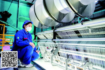 “这是经织机,通过这个大家伙,我们可以把玻璃纤维编织成玻璃纤维布,是风力发电、新能源汽车、轨道交通及航空航天等行业的重要的原材料。”山东硕远新材料有限公司副总经理顾兴乐告诉记者,玻璃纤维是一种性能优异的无机非金属材料,绝缘性好、耐热性强、抗腐蚀性好、机械强度高,常用作复合材料中的增强材料,织成的玻璃纤维布具有广泛的应用前景和市场需求。