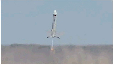 下午1时许,在酒泉卫星发射中心,3.8米直径的重复使用运载火箭新技术验证箭竖立在场坪发射台上,3台变推液氧甲烷发动机点火,喷出蓝色尾焰,箭体上升至约12公里高度,中心发动机调节推力,火箭受控下降,在距离地面50米处,四条着陆腿展开,随后火箭缓速下降,高度趋近于零,稳稳落在回收场坪,实现定点垂直软着陆。试验全程用时6分钟左右,火箭经历了加速上升、减速上升、加速下降、减速下降、缓速下降五个阶段,实现“起得来、控得准、展得开、落得稳”。