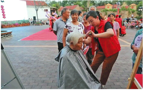 ▲志愿者现场义剪,为群众办实事。