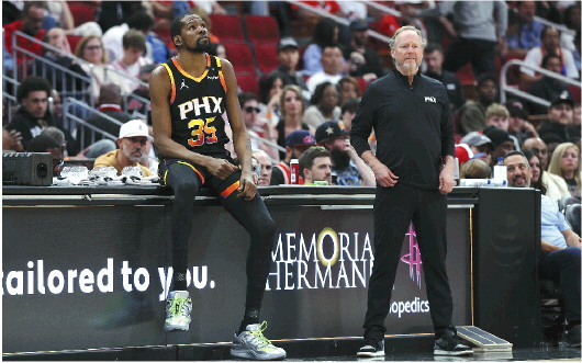 太阳也曾动过降低总薪资、改变阵容的心思。可布克被视为建队核心,比尔有交易否决权,那么动谁可能性最高?答案很明显了:杜兰特。
