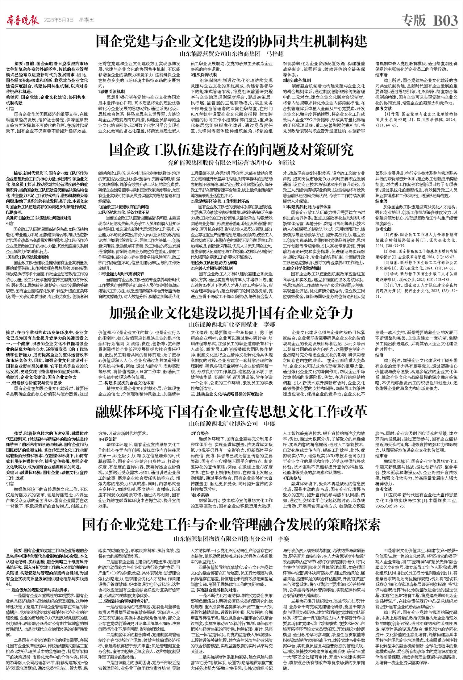 [1]卫庆华.新时代国有企业壮大宣传思想文化工作的实践与探索[J].中国煤炭工业,2025,(02):74-75.