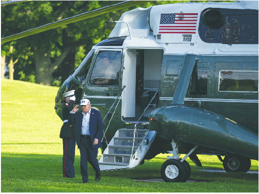 7月6日,美国总统特朗普乘直升机返回华盛顿白宫。 新华社发