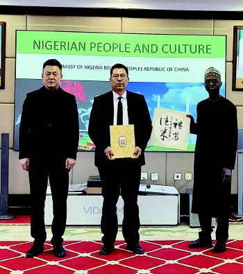 11月27日,对于中国楹联学会会员、山东青年书法家协会会员、济南青年书法家协会理事、济南槐荫区书法家协会理事韩明华而言,是意义非凡的一天。受中名联赵鹏推荐,这位来自嘉祥县的青年书法名家,应邀走进尼日利亚驻华大使馆开展文化交流,他深知,自己此次肩负的不仅是书法艺术交流的使命,更承载着家乡故土的殷切期许,要将嘉祥县这座千年古县的文化底蕴推向国际舞台。