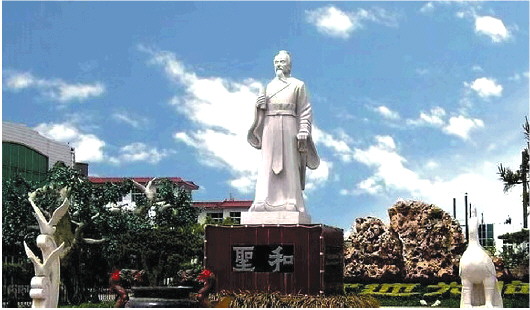 新泰市和圣园内的柳下惠塑像。