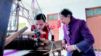 赵芳云(右)在传授鲁锦技艺。
