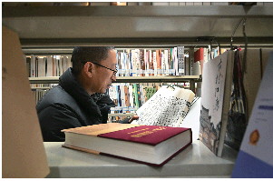 刘宏去图书馆核查老街区的变革和故事。