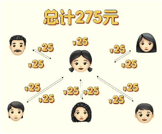网友制作的一家六口互相领千问红包示意图。