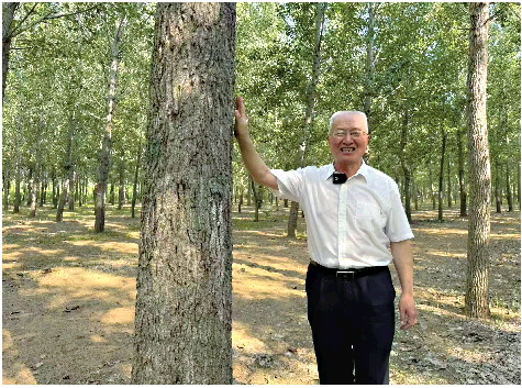 李善文在“华雄”2号新品种杨树旁。 受访者供图