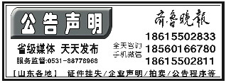●北京市兰台(济南)律师事务所专职律师张光明,所持律师执业证(执业证号13701201310994099,流水号12524154)不慎遗失,现声明挂失作废。