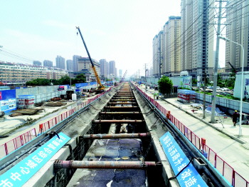 站在施工现场不到10分钟,即使不穿工作服、不戴安全帽,都让人大汗淋漓,现场施工的工人们脸上更是布满了汗珠。“在保证质量的前提下,为了尽量加快工程进度,我们在每个施工区域都加派工作人员,由原来的70人增加至120人。”赵玉茁说,目前整个项目工程已进入主体施工阶段。其中冠梁完成100%,降水井完成100%,止水帷幕完成100%,基坑土方开挖外运完成65%,基坑喷护完成60%,主体底板完成30%,侧墙及顶板完成10%。下一步完成土方开挖后,将全面开展管廊主体施工。
