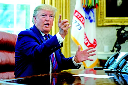 7月26日,在美国华盛顿白宫椭圆形办公室,美国总统特朗普对媒体讲话。 新华/美联