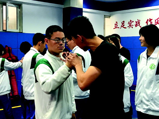 “凌云特战队”教员教授同学们防身动作。