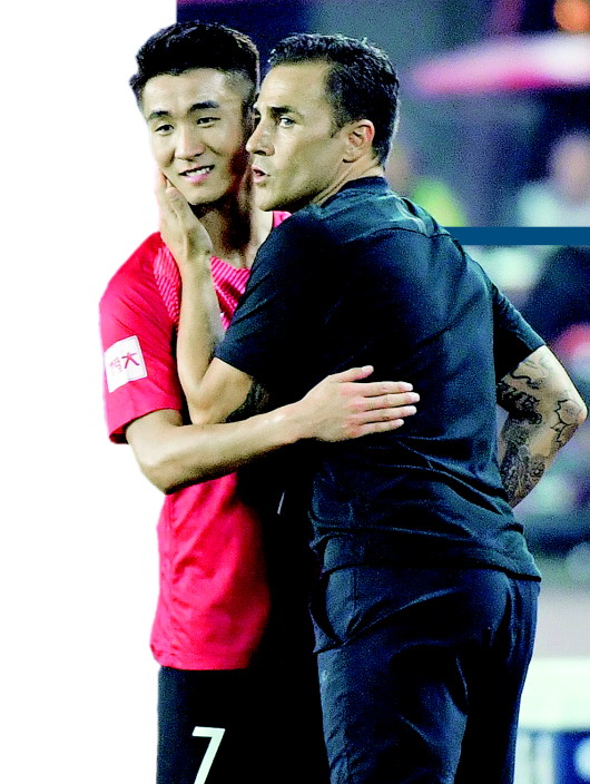 恒大保留夺冠希望,卡纳瓦罗松了一口气。 新华社发