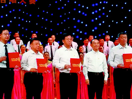 杨春亭局长(左二)参加“心系祖国爱我济阳”全民合唱比赛一等奖典礼。