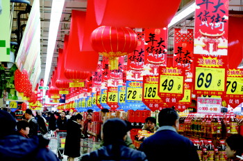 大润发超市里,年货大街早早的就布置好了。装饰品、酒类、糖果、干果等春节必备的商品琳琅满目,不少前来采购年货的市民将手推车装得满满当当。“今年外地的亲戚们都回来,我给他们带点咱济宁的特产。”市民高女士和老公一人推着满满的一车年货说,大家在外地工作,山珍海味的也都不稀罕,给他们带点微山咸鸭蛋、泗水粉条之类济宁特产回去,即使在外地,也能尝到家乡的味道。
