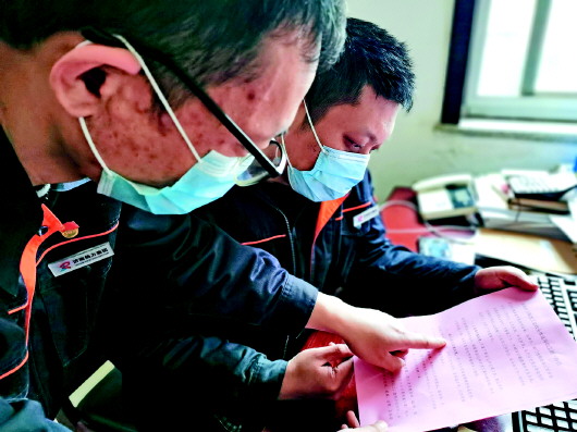 和义热力党员高国庆与同事认真核对外地返济人员信息。