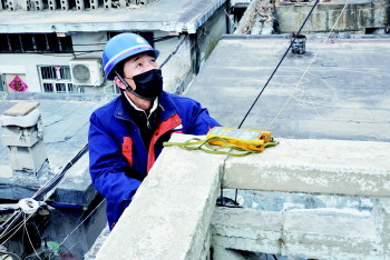 装机人员顶寒风巡查光纤线路,保障网络畅通。 冯雅令 摄
