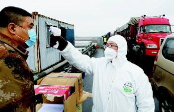 2020年2月2日,工作人员对过往车