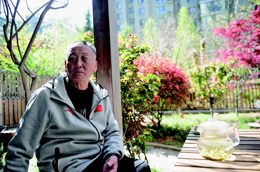 打球回来,牛兆衍坐在自家小院里品茶赏花。