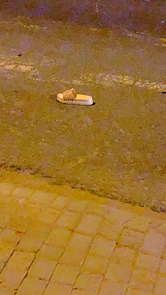 车祸现场遗落的鞋子。
