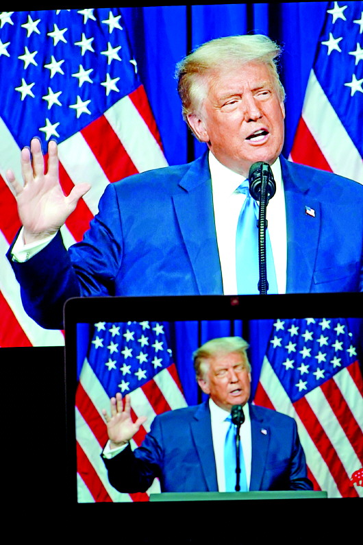 拜登(右)和特朗普分别通过视频在民主、共和两党的全国代表大会上亮相。