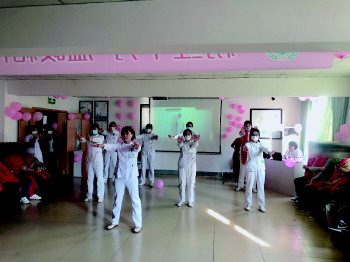 联谊会上,威海市立医院西院区党委书记刘芳为给患者们送上了诚挚的祝福,乳腺与甲状腺外一科副主任秦春新为患者们解答了康复路上的疑问,安抚了患者们内心的不安。随后,杨建玲医生以《一条通往希望的漫长艰辛路》为题,表明疾病因人而异,需要重视患者生理康复也要重视患者的心理康复;矫璐宇医生以聊天的方式,一反常态没有围绕乳腺癌患者术后的不良反应及应对入手,反而选择相对冷门的睡眠对乳腺癌患者的影响与患者展开交流;特邀中医专家姚朋华医生强调了乳腺疾病养生的三个原则:精神调摄、运动锻炼和饮食保养相协调;国际淋巴水肿治疗师、乳腺与甲状腺外二科副护士长米慧针对患者出现淋巴水肿问题进行现场指导;乳腺甲状腺外科护士们现场为患者测量臂围预防淋巴水肿,还将专业与日常保健相结合,为大家带来了中期锻炼功能操表演。之后的有奖问答环节更是将联谊活动推向了高潮,主持人问题刚抛出来,大家就踊跃举手、争相回答。