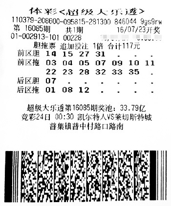2016年7月23日,体彩大乐透第16076期开奖,当期惊爆2.23亿巨奖的同时,济南章丘彩民也得到幸运女神的垂青,凭借一组追加胆拖票,仅花117元捧回当期一等奖一注,以及二等奖2注、三等奖12注、四等奖24注等,共获奖金889万元。本注大奖,已经是济南彩民今年中得的第五注大乐透大奖,此前分别是1048万、853万、736万和1014万,其中3注是由大乐透复式6+3所中得。