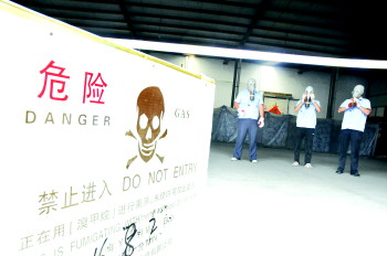 当日,他们还将陆续赶赴十多个企业库房,逐一熏杀出口农产品中的病虫害及有害生物。