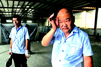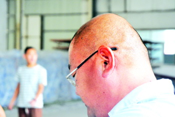 工作人员热得满头大汗。