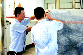 当日上午11时许,在金乡县一家大蒜出口企业的库房内,即将出口毛里求斯的56吨大蒜均匀的被码放在内。虽然当日的温度不太高,由于库房密封得很好,在阳光的炙烤下,室温也有40℃。此时身着长裤工作服的队员们,往返检查了几遍覆盖着的篷布,压好沙袋后,已大汗淋漓。