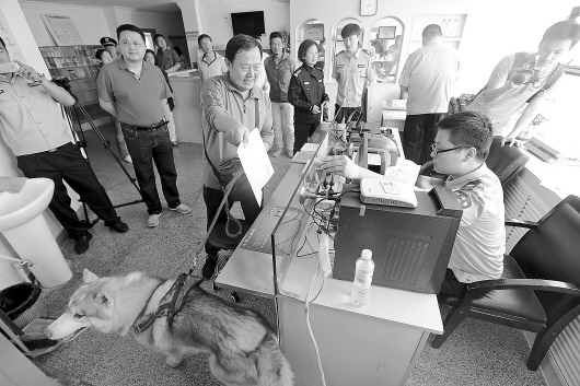 《青岛市养犬管理条例》8日落地,民警正在开展养犬登记和收费相关工作。本报记者 张晓鹏 摄
