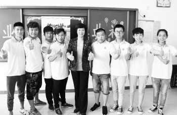 8名学生与校长合影留念。 本报记者 马辉 摄