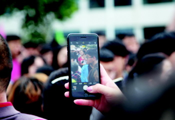 一位母亲用手机在人群中寻找着自己的孩子,记录下这一难忘的高考时刻。 本报记者 马辉 摄