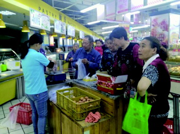 鸡蛋便宜的价格让很多市民选购。本报见习记者 孙璇 摄