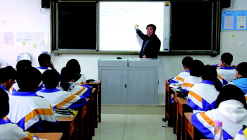 焦广良校长正在给学生上课。