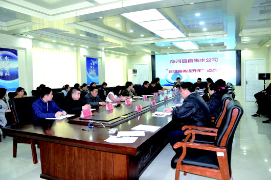 近日,商河县自来水公司召开“管理服务提升年”动员大会,会议主要部署2018年度各项工作,认真贯彻落实党的十九大精神,按照全县“2383”工作体系和商河县水务局“453”水务发展思路要求,以工作绩效考核为抓手,以全省饮水安全示范县创建为契机,按照“管理服务提升年”目标任务要求,着力加强管理服务、项目建设和行业能力建设,不断提升供水保障和服务水平。商河县自来水公司负责人表示,对于2018年全县供水工作,也希望大家提出宝贵意见和建议。